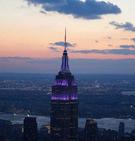 In the evening, the Empire State Building shined its world-famous tower lights in a purple sparkle to celebrate the 47th annual Run-Up.